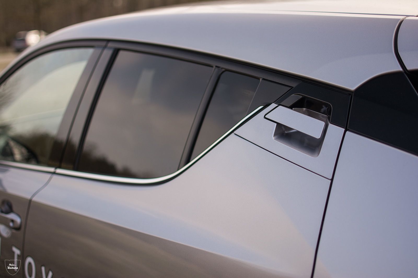 Toyota a soigné sa finition dans les moindres détails. Cela se vérifie tant à l'extérieur qu'à l'intérieur. Des jeux de matières sont parsemés ici et là, comme les grilles du pare-choc avant, avec une grille bouchée ou les poignées de porte arrière incluses dans la continuité du vitrage arrière.
